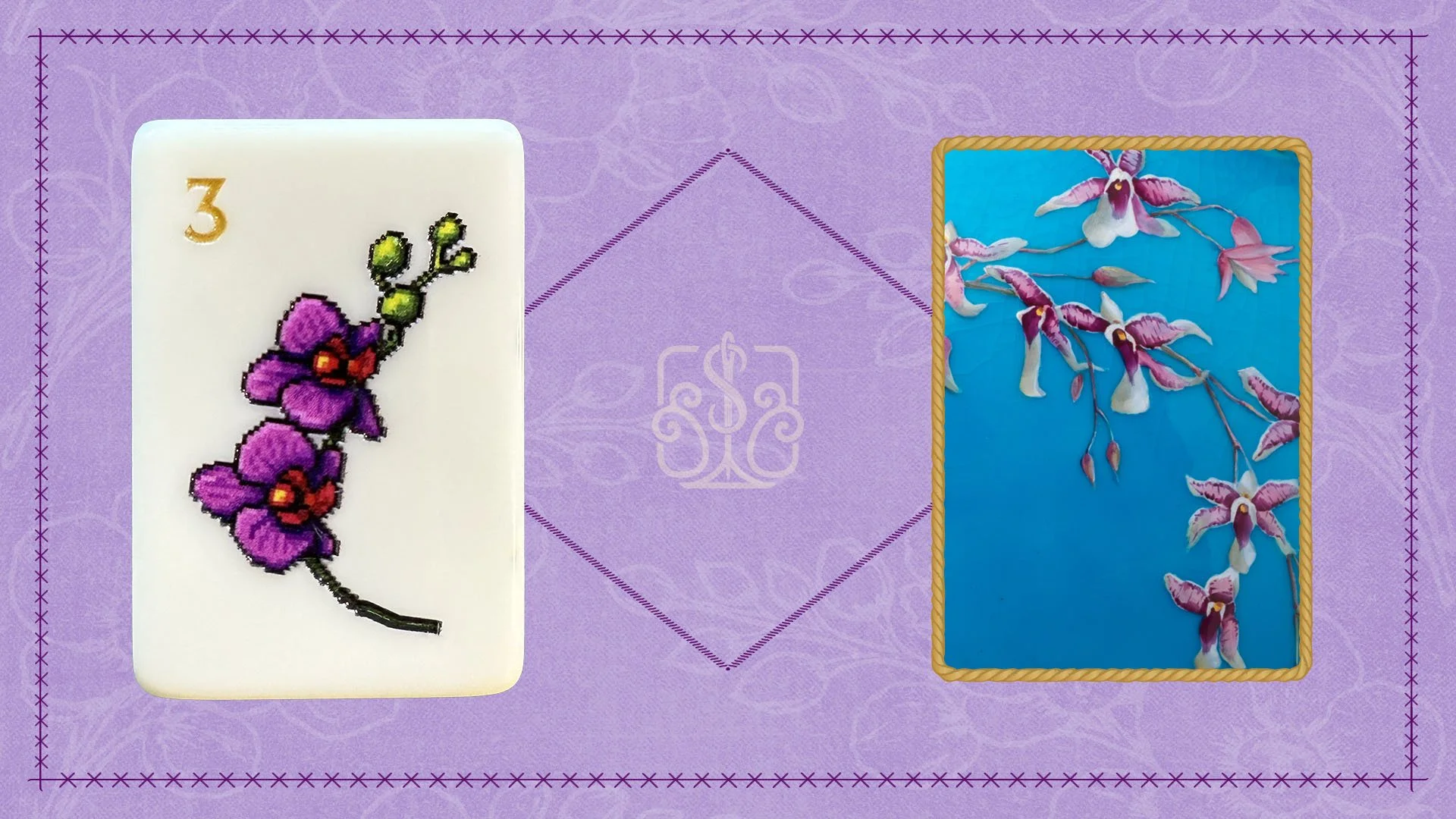 The Flower tiles are rendered as painted canvases, pairing traditional mahjong flowers with additional blooms selected from Egyptian history and needlework.